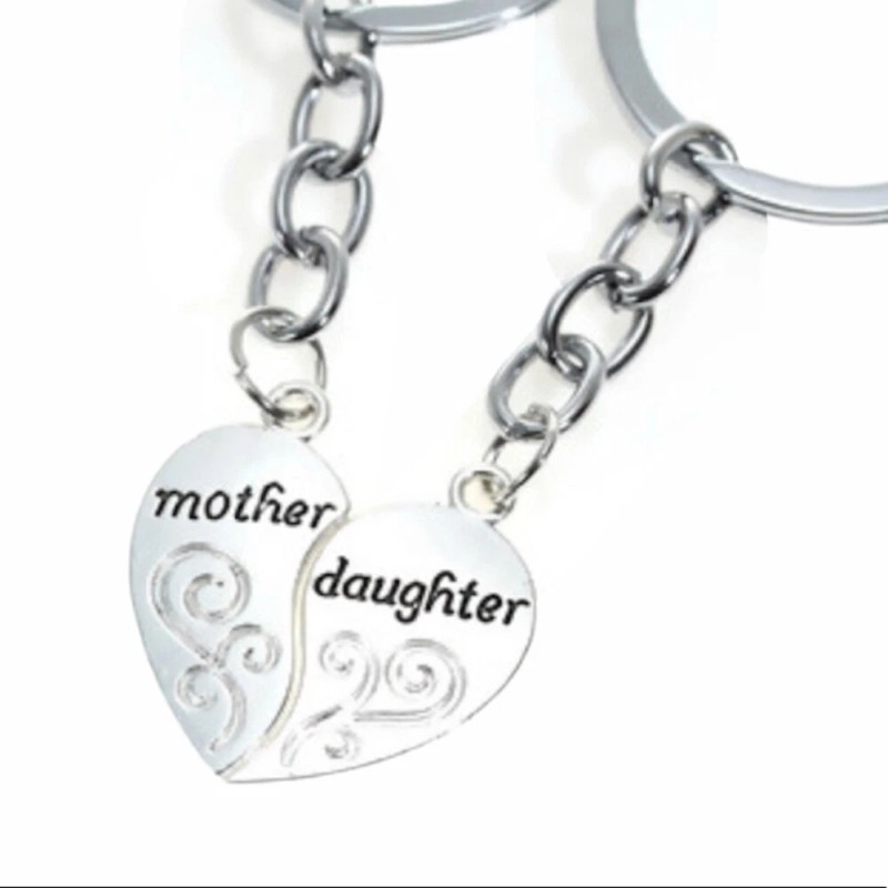 Key Mother and Daughter Heart Key Chain, Silver tone