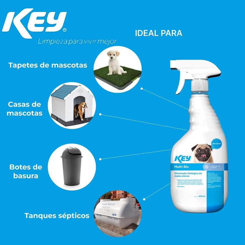 KEY Multi-Bio Eliminador Biológico De Malos Olores Para Mascotas 650ml