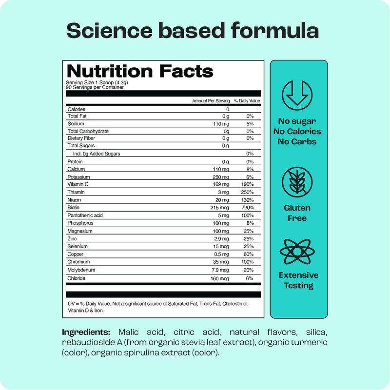 - Zero Sugar, Calories, and Carbs - Time to ditch those sugary sports drinks. Our science-based hydration mix formula is sugar free, has zero calories, zero caffeine, and zero carbs. Feel great with our keto electrolytes powder packets that's ideal for daily life hydration.