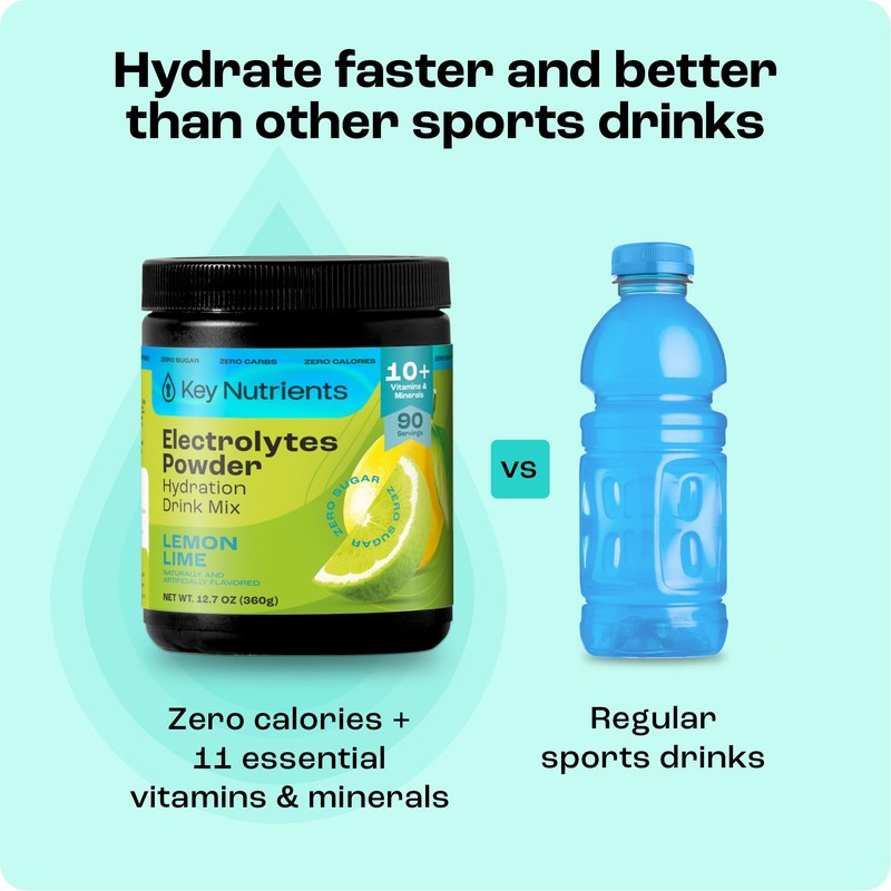 - Loaded with Key Nutrients - Refuel with our delicious lemon lime hydration powder, powered by 6 key electrolytes, including magnesium, potassium sorbate, and calcium. What's more, our electrolytes powder is enriched with 18 vitamins and minerals, helping you stay healthy and hydrated.