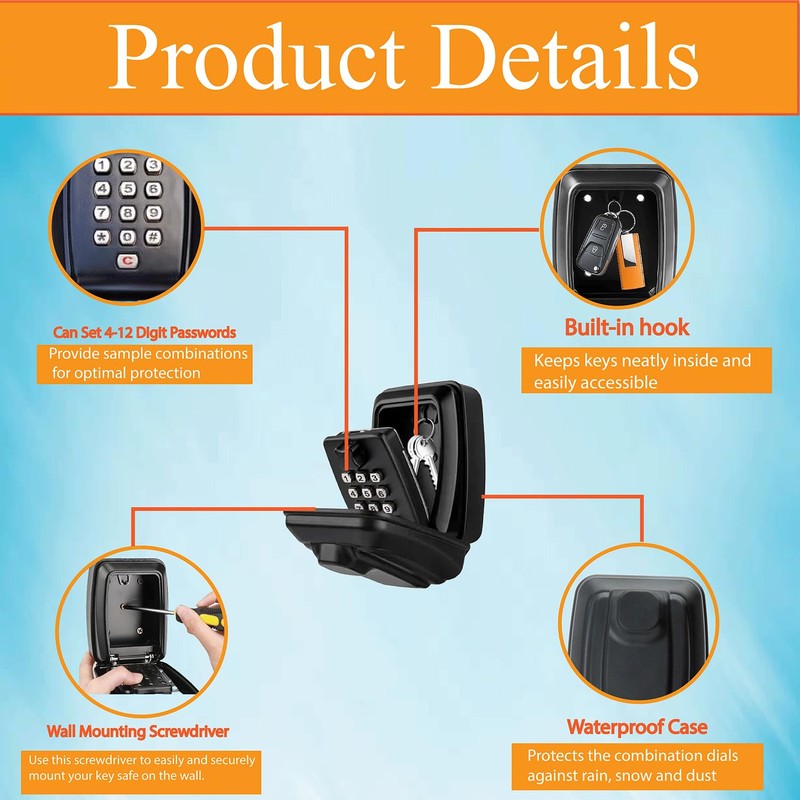 - 🔒 SECURE & DURABLE: Our key box is made with robust materials and a sturdy design to withstand harsh weather conditions, ensuring your keys stay safe and secure. Perfect for wall mounted key boxes and lockbox solutions, as well as outdoor key safe wall mounted uses. Our outdoor key safe provides peace of mind knowing your keys are protected.