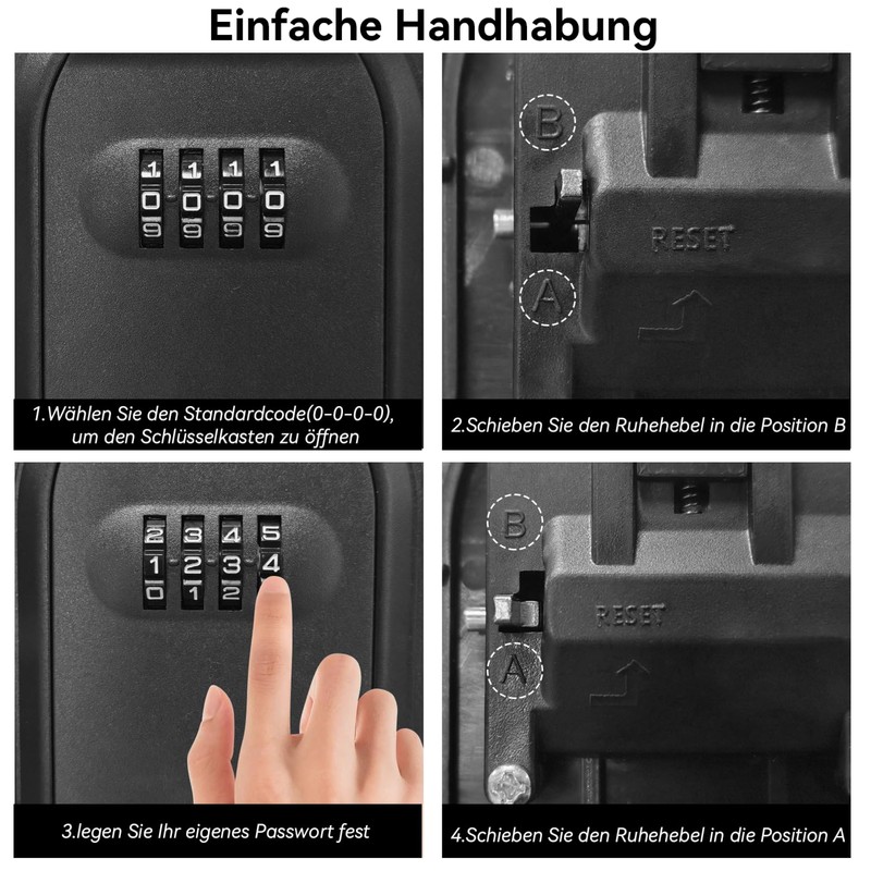 The key safe comes with 4 numeric codes, so you have 10000 unique ways to set your own combinations, the initial code is 0000, you can change the code according to the included instructions, please be sure to remember your own code so as not to be able to open it correctly!