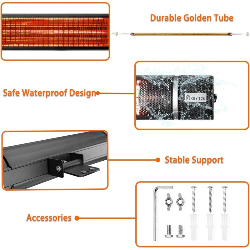 KEY TEK Wall Mounted Patio Heater Outdoor Electric Infrared 1500w Waterproof w/ Remote