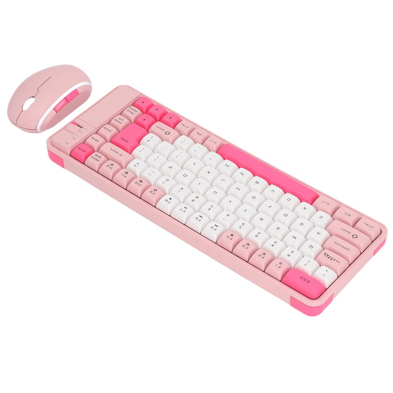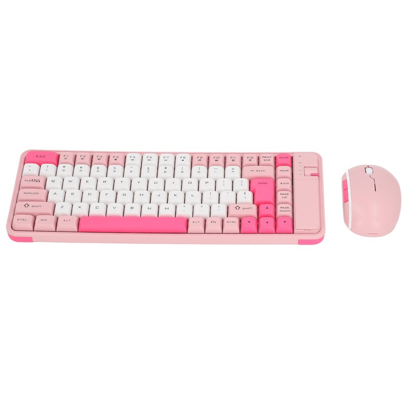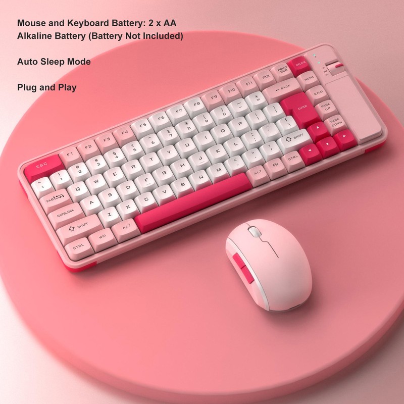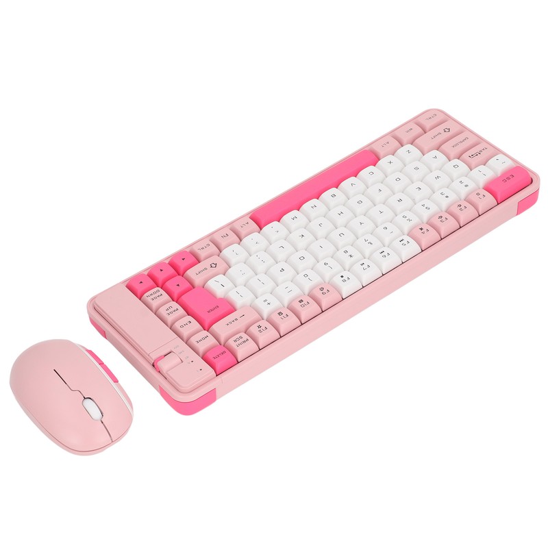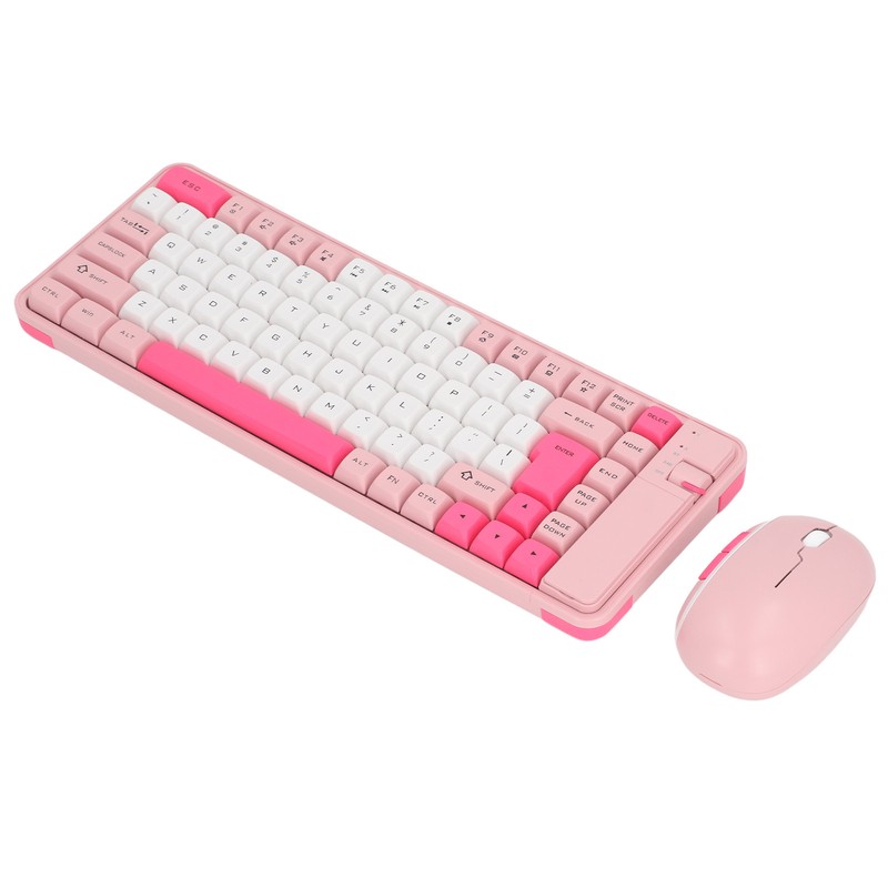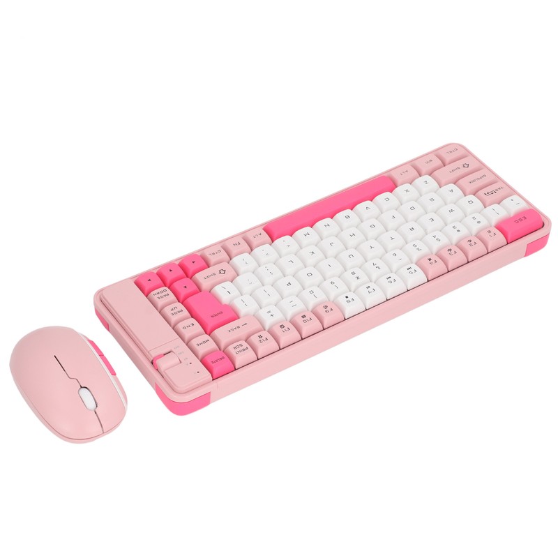 Keyboard and Mouse Combo 84 Keys QWERTY Layout USB Receiver Bluetooth Contrast Color Keyboard Mouse Set for Office Travel Pink