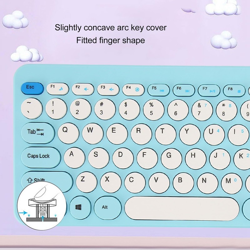 Keyboard and Mouse Combo, Cute Retro Keyboard with Round Keycaps, Mute Ergonomic 2.4G Keyboard Mouse Combo for Desktop PC Computer for OS X for Windows (Blue)