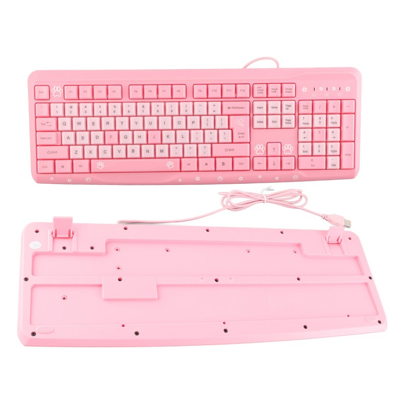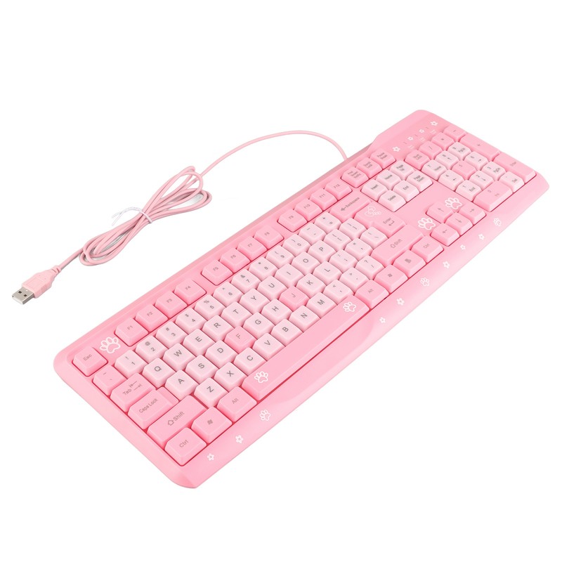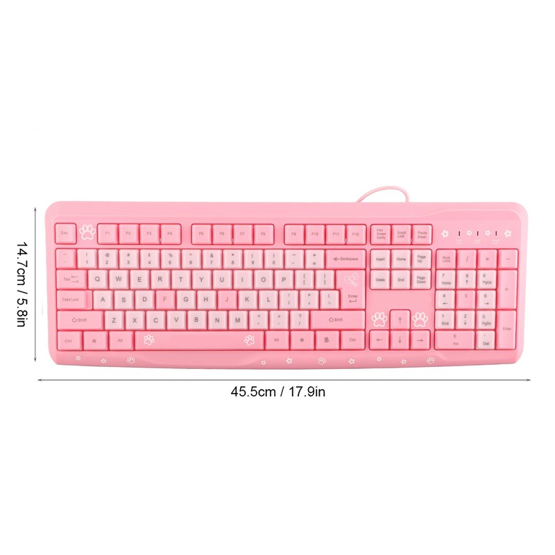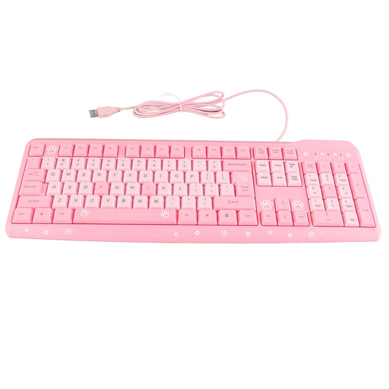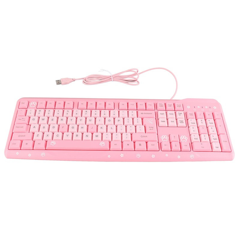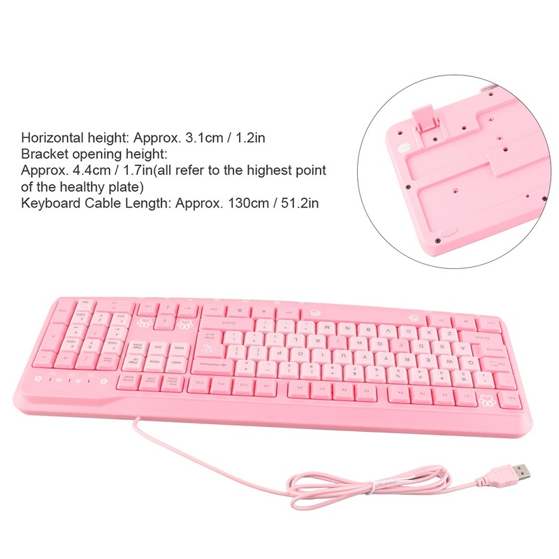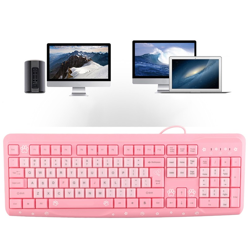 Keyboard USB Wired UltraThin Cute Cartoon for Home Office Laptop Computer Universal(Pink )