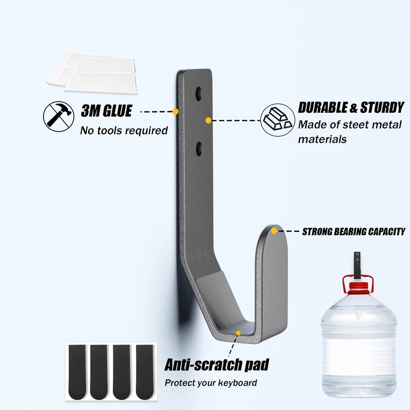 Keyboard Wall Mount Storage,Metal Wall Hanger Rack with Adhesive & Screw in, Universal for Gaming Mechanical Keyboards, for Devices Thickness < 2.5cm