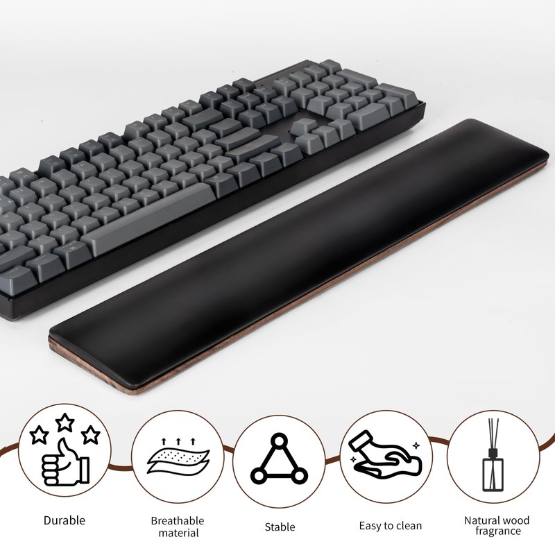 - Wooden & Foam Wrist Rest: This wrist rest is made of natural solid wood and high quality memory foam, the material is soft but firm and is a great solution if you don't want keyboard wrist rest too soft or too hard.