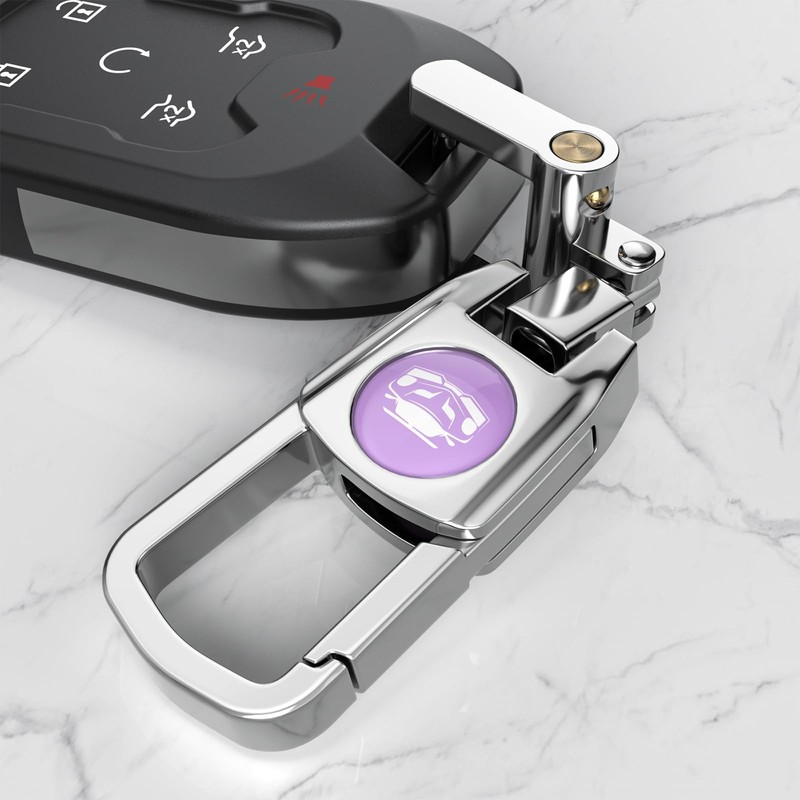 Keychain For Car accessories, Metal Keychain That Does Not Require Screws To Install, Anti-lost And Anti-falling Car Key Ring(Silver-Purple Logo)