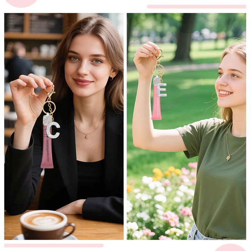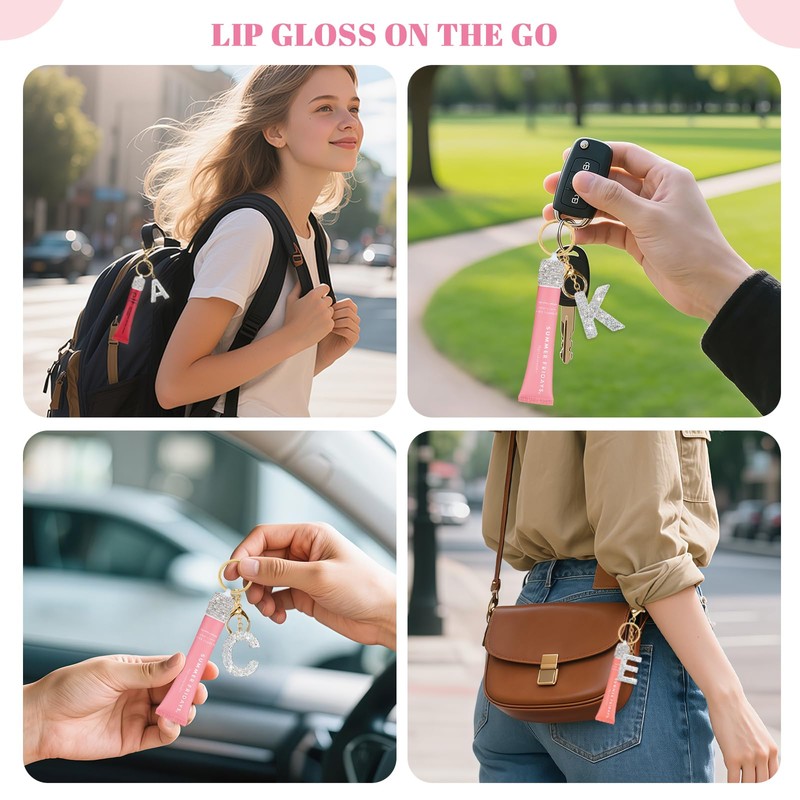 - LIP GLOSS ON THE GO: These lip gloss keychains are not only practical, but also have a variety of letters to choose from, making them a fun accessory to personalize your daily essentials. You can hang your lipstick on keychains, backpacks, handbags, adding a touch of fashion while keeping your beloved lip gloss within reach all day long. Perfect for commuting, travel, fitness and outdoor activities.