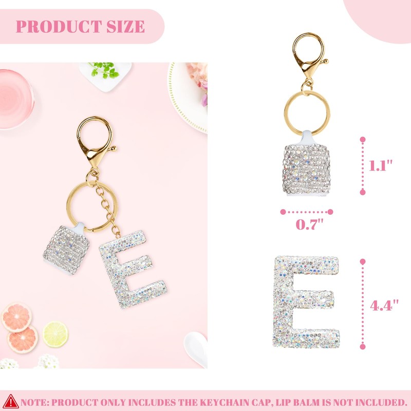 Keychain Holder for Lip Gloss Summer Fridays, LANGIGE and ELF, Bling Lip Gloss Keychain Cap, Portable Lipgloss Letters Charms (White, Letter-E)