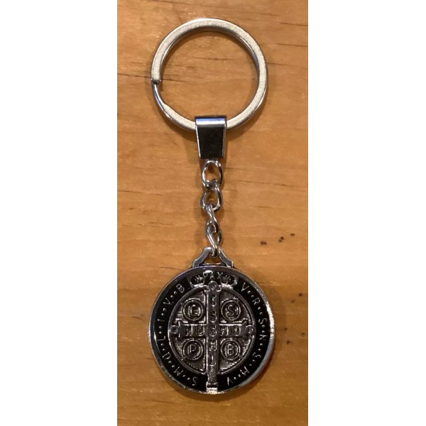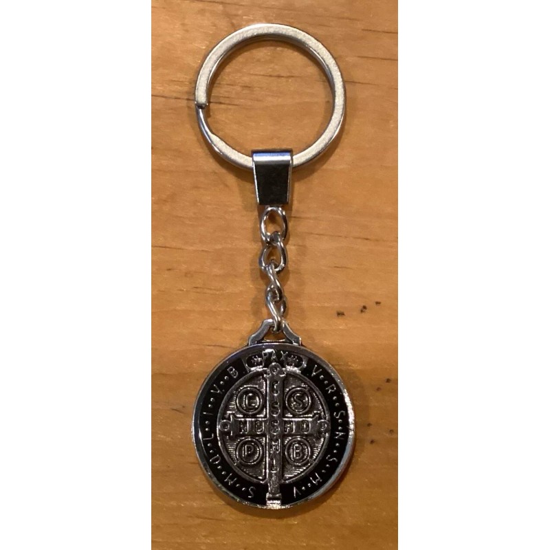 Keychain Of St Benedicth With Black Enamel, Llavero Negro San Benito Protection
