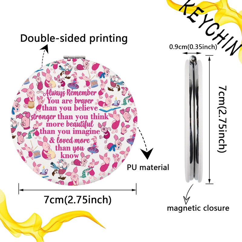 KEYCHIN Espejo de bolsillo con lechón para fanáticos de lechones Regalos You are Braver Stronger Smarter Than You Think Piglet Espejo compacto para mujeres y niñas (Piglet-blanco)