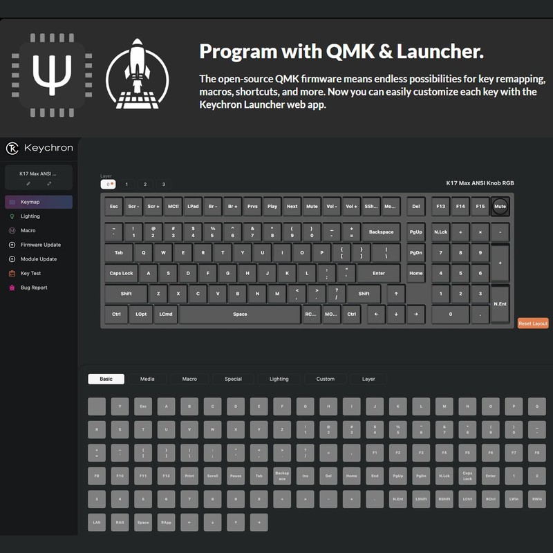 • Ergonomic Support & Compatible with All Devices: Three levels of adjustable typing angle provide long-lasting ergonomic wrist support. The K17 Max offers a Mac layout while remaining compatible with Windows, providing the same multimedia and function key functions as Apple keyboards for Mac users, but with enhanced tactile feedback. Effortlessly switch between Mac and Windows devices using the Keychron Launcher without changing keycaps.