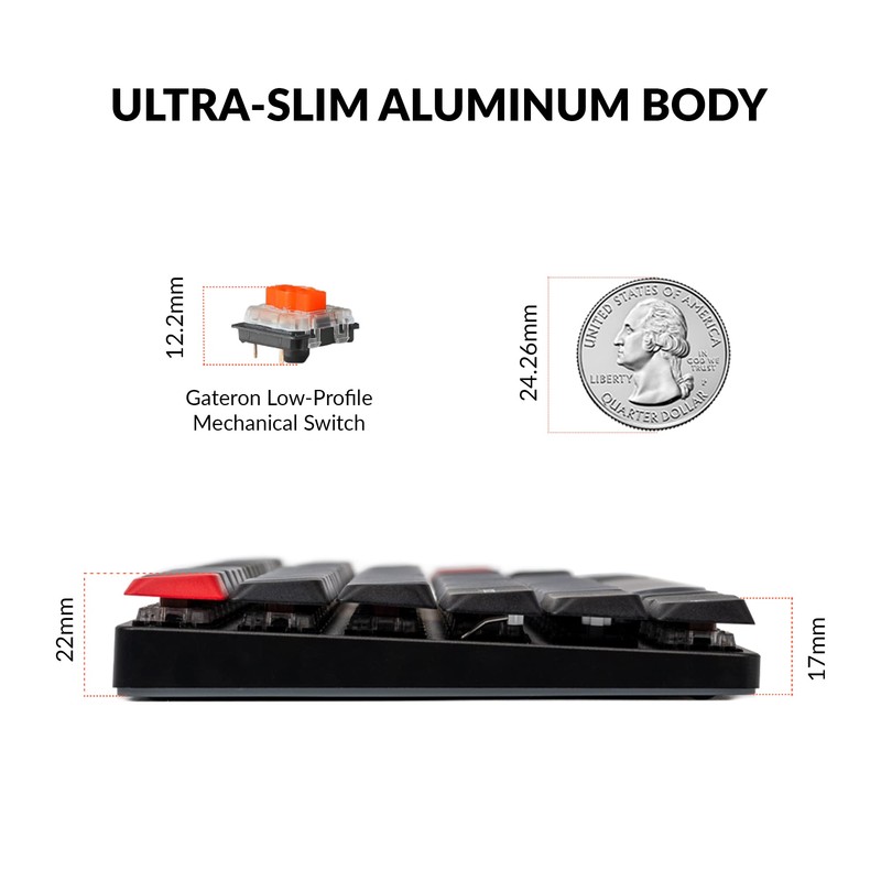 • Hot-swappable Support: The pre-installed low-profile mechanical linear red switch provides unrivaled tactile responsiveness with up to 50 million keystroke lifespan. You can easily hot-swap every low-profile Gateron mechanical switch in a few seconds to customize the typing experience without soldering. Note: The K3 Pro is currently compatible with Gateron low-profile mechanical switches only, as QMK does NOT support low-profile optical switches.