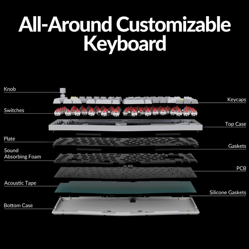 - Double Gasket Design: An innovative structure adds silicone pads between the upper and lower housings to minimize sound resonance and reduce noise from metal impacts. This design maintains the board’s flexibility while significantly improving acoustics for a more satisfying typing experience.