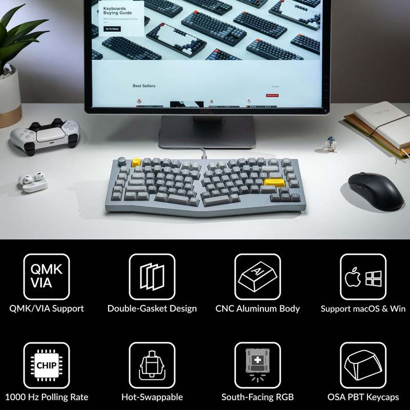 - Ergonomic Design: The Keychron Q10 is a premium 75% Alice layout mechanical keyboard crafted for ergonomic comfort. Its split, curved frame promotes natural typing, reducing wrist strain and tension, making it ideal for all-day use. The CNC-machined aluminum body ensures durability, while the dual-gasket design and QMK/VIA support provide a refined and customizable typing experience.
