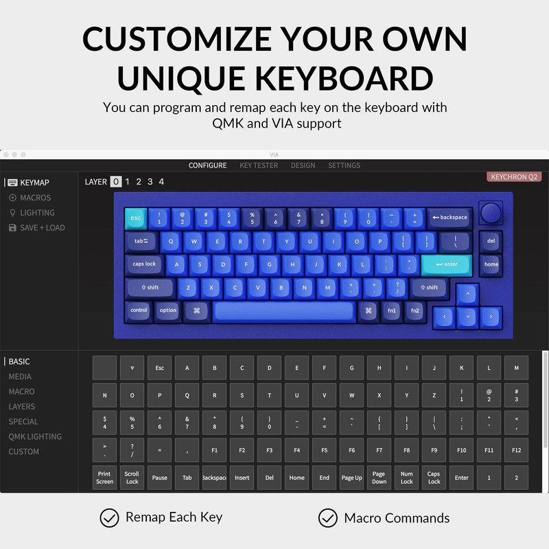 Keychron Q2 Wired Custom Mechanical Keyboard Knob Version, 65% Layout QMK/VIA Programmable Macro with Hot-swappable Gateron G Pro Red Switch Double Gasket Compatible with Mac Windows Linux (Blue)
