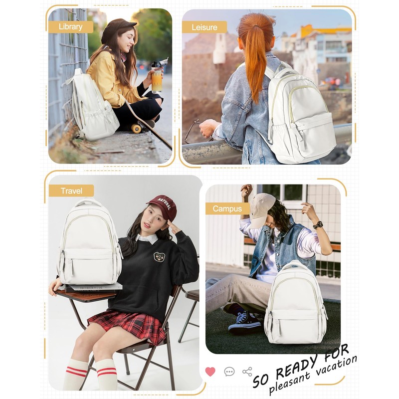 KEYEMP Lightweight Backpack for Women, Large Laptop Travel Backpack Casual Daypack with USB Charging Port for Men, Simple Cute College Backpack for Teens, Beige