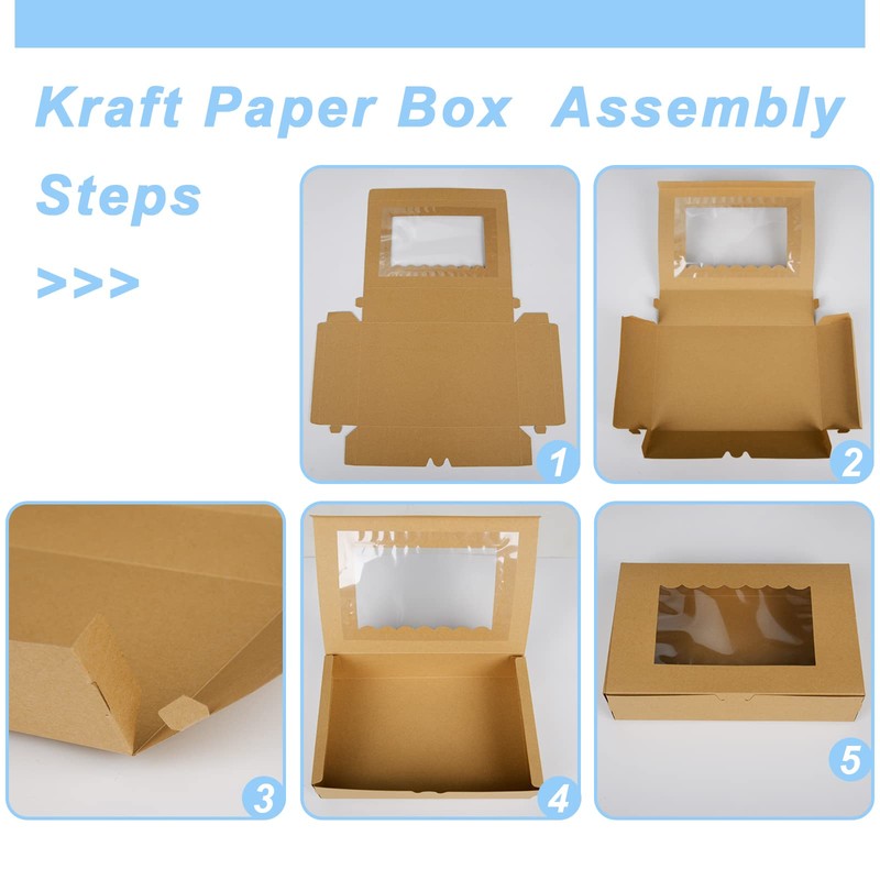 - HIGH QUALITY MATERIAL: The cookie box is made of kraft paper with a transparent PVC window, strong and durable, thick enough to avoid deformation, can protect your pastries, recyclable after use, safe and environmentally friendly