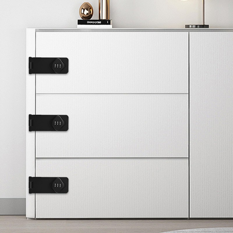 - 🌍 WIDE APPLICATION FOR ALL HOME NEEDS: This password hasp latch lock isn’t just for cabinets—use it on drawers, pet gates, safes, or closet door lock systems to secure any space. As a versatile cupboard locks solution, it provides unified security across kitchens, bathrooms, or pantries. One lock meets all needs, making it an essential hasp lock for organizing and protecting every corner of your home.