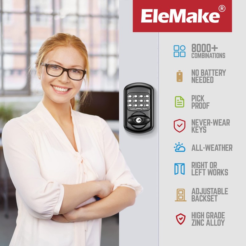 - 🔒【100% Mechanical (No risk of low battery)】High grade deadbolt lock, Keyless entry door lock deadbolt. You can use passcode or key to lock/open it, very difficult to pry open.