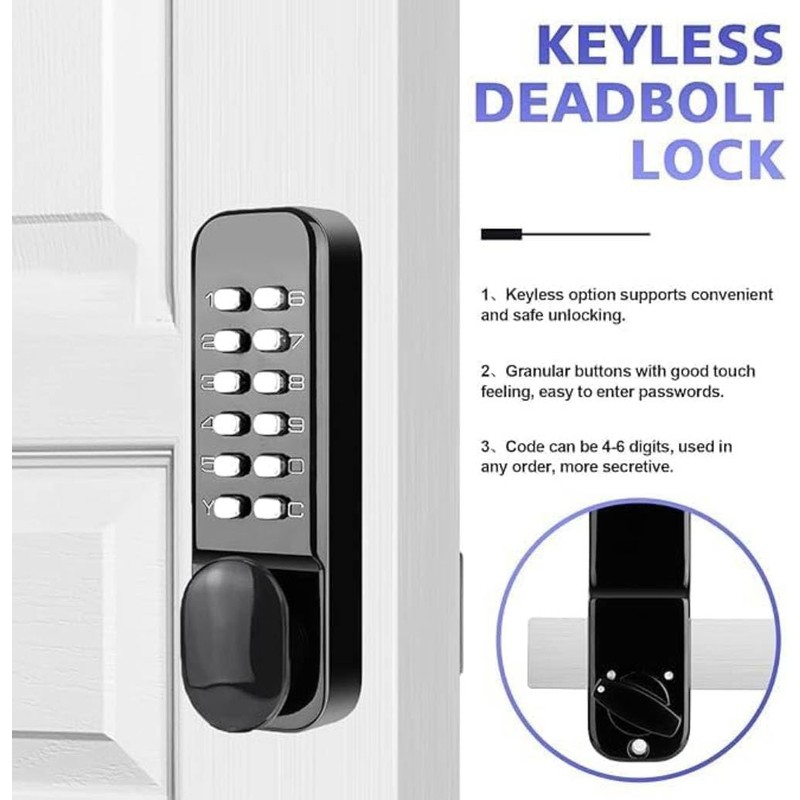 - ใEasy Installationใ: The mechanical keyless deadbolt lock comes with instruction manual for install, non-professionals can easily set the password and install it successfully. The holes required for installation are small and will not damage your door.