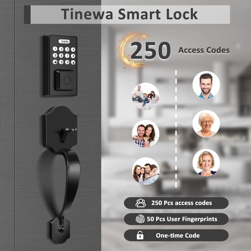 - [Multiple Ways To Unlock]: Advanced 4-in-1 Keyless Entry Smart Door Lock: Passcode + Fingerprint + APP Control + Key. You can give your friends and guests their own unique codes. A one-time password for temporary visitors, the one-time code will automatically deleted after use.