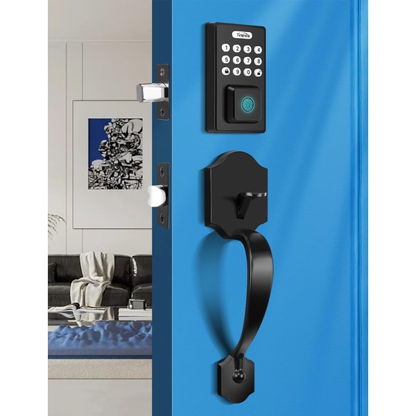 Keyless Entry Door Lock with 2 Handles, Tinewa Electronic Keypad Deadbolt, Auto-Locking, Anti-Peeping Password, Digital Smart Code Door Lock, Front Door Handle Sets, Matte Black