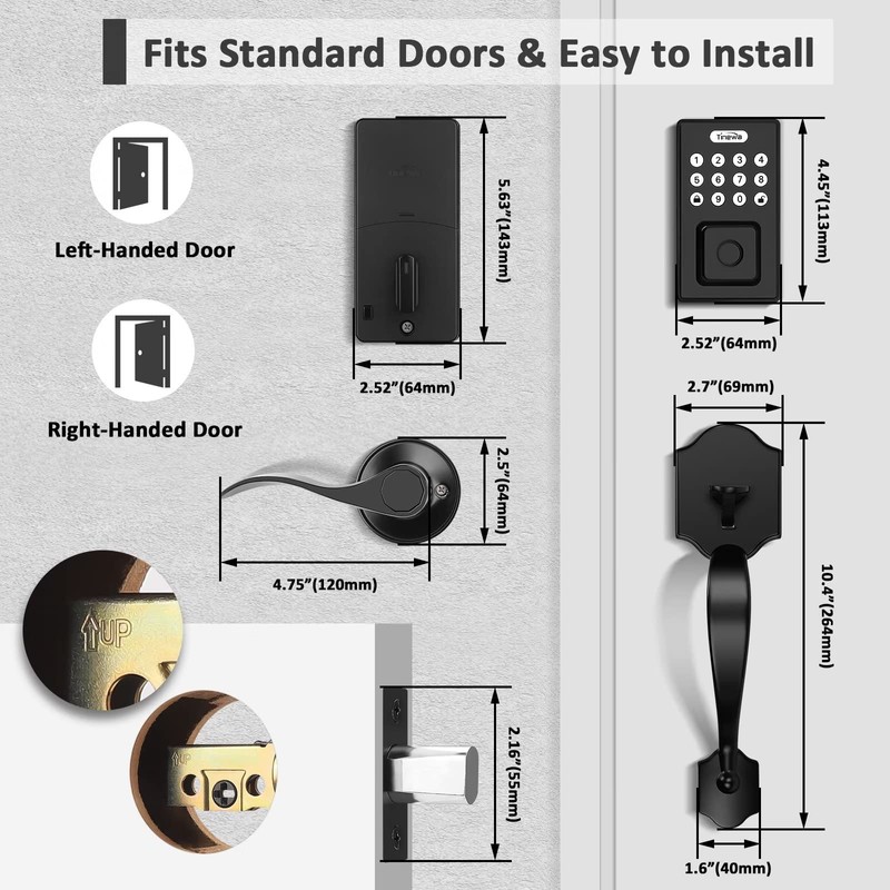 - [Fit for Left or Right Door]: You don't need to worry about the direction of the lock corresponding to the door. The keyless lock is suitable for left-handed door and right-handed door. Just adjust the smart deadbolts' rotary knob and'L/R Button' according the user manual.
