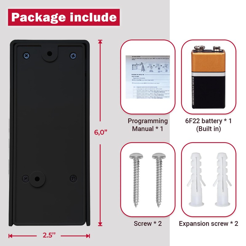 - Strict quality control: Each of our Wireless Garage Door Opener must be tested by multiple professional procedures before leaving the factory, and with manual sampling inspection and the quality is trustworthy