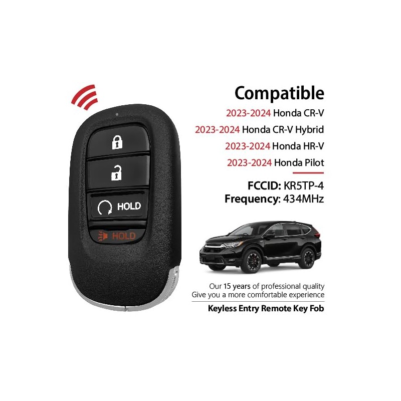 Keylessbest Replacement for 2023 2024 Honda CR-V Hybrid HR-V Pilot Key Fob Remote Control KR5TP-4 4 Buttons 434MHz