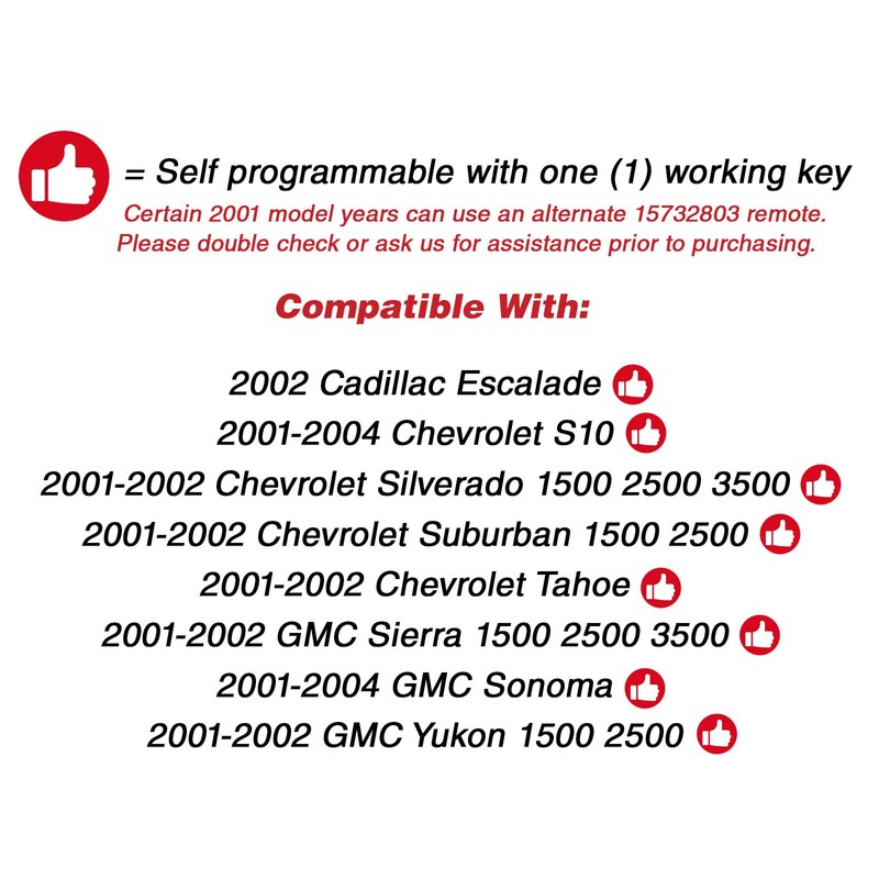- Replaces 15732803, KOBUT1BT, please confirm part number from original remote