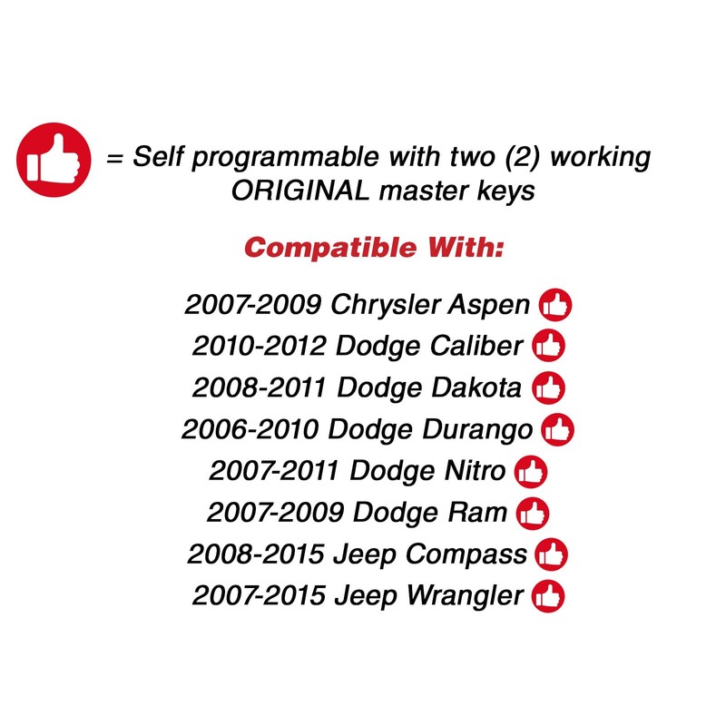 - Se pueden programar por el usuario, instrucciones paso a paso incluidas, se necesitan dos llaves originales existentes si no hay dos llaves originales existentes o si se requiere una programación de cerrajero o distribuidor de trabajo.