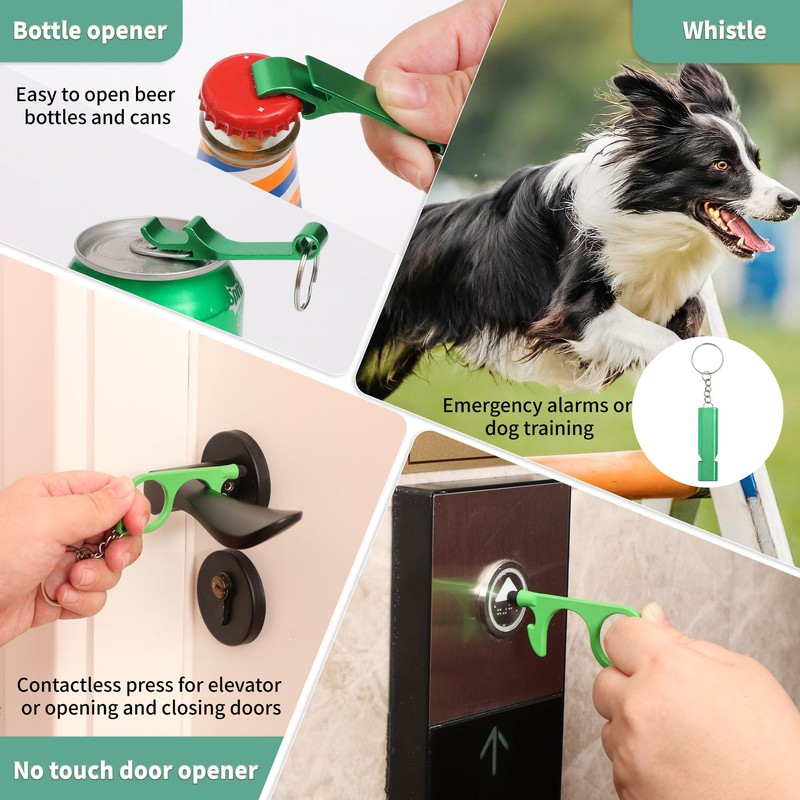 - Keychain accessories include: Personal alarm, glass nail buffer, no touch door opener,silver bling rhinestones keychain, whistle, bottle opener, pompon, wristband, silicone airtag case.