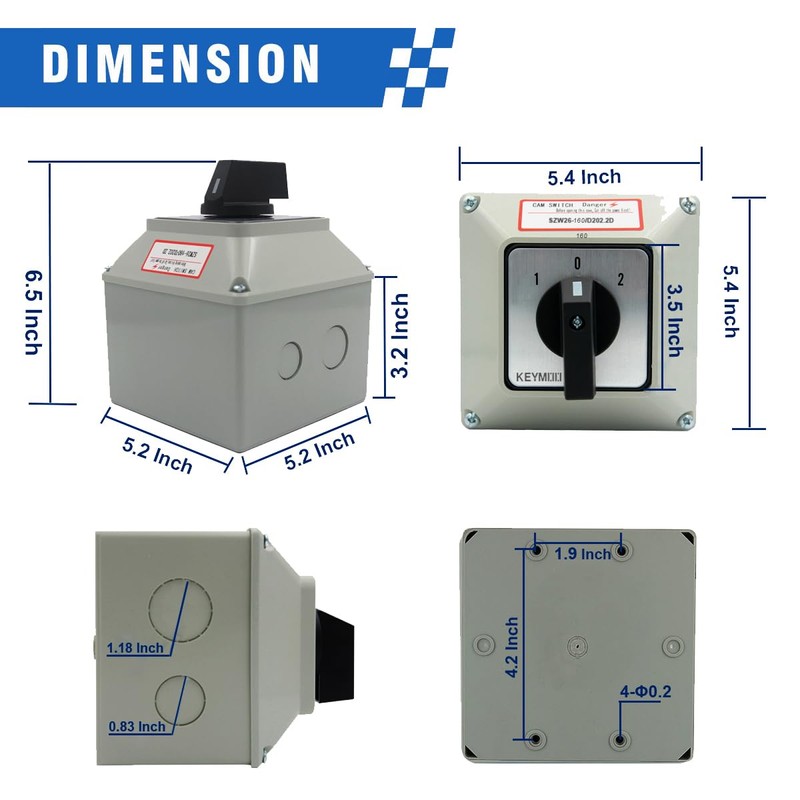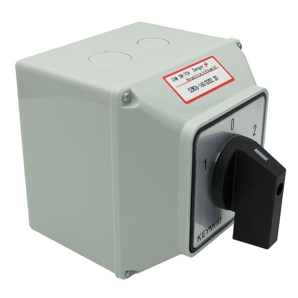 KEYMOO 160A 660V Rotary Change-Over Switch with Box, 2-Way 2NO 2NC 3 Position 2 Phase 8 Terminals, Universal Selector Switch for Large Motor Equipment