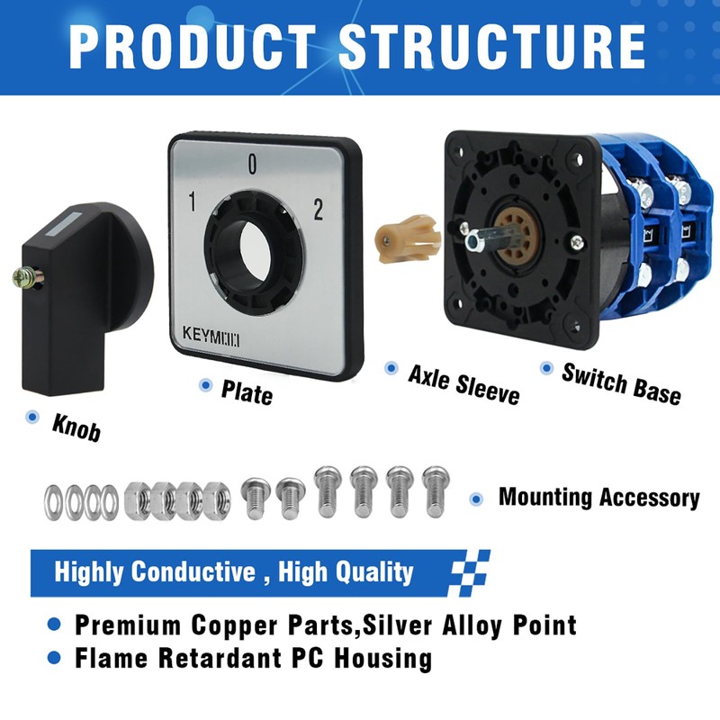 - 【3 Positions】1-0-2 = ON-OFF-ON, 2 Poles, 8 Terminals