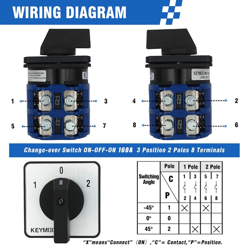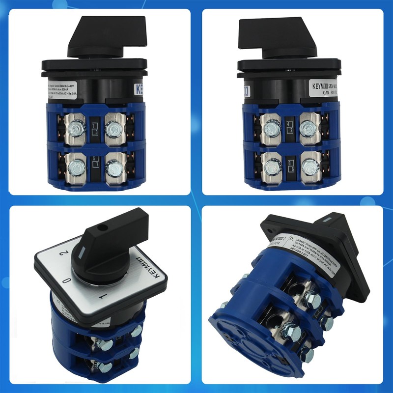 KEYMOO 160A 660V Rotary Changeover Switch, 2-Way 2NO 2NC 3 Position 2 Phase 8 Terminals, Universal Selector Switch for Manually Control Large Motor Equipment