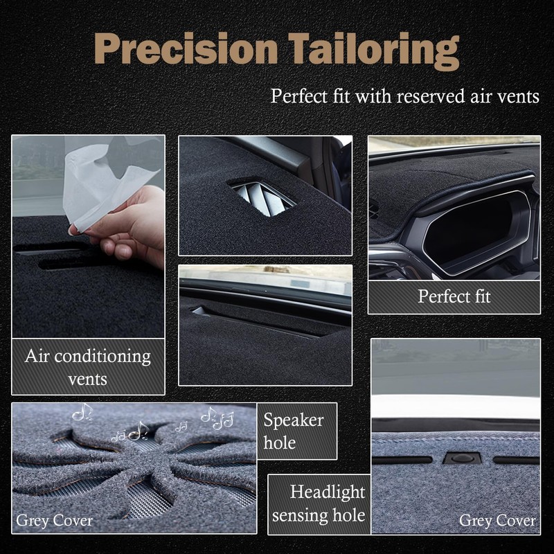 • 🚗🚗🚗【Customized Design】- Laser cutting, customized car mold opening, perfect fit, and the fine stitching is suitable for the arc of the original car. All defrost and AC vents are pre-cut. The back of dashboard cover mat is made of non-slip silicone particles, also equipped with Velcro, which further strengthens the fixing.