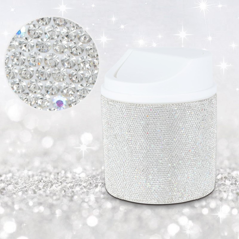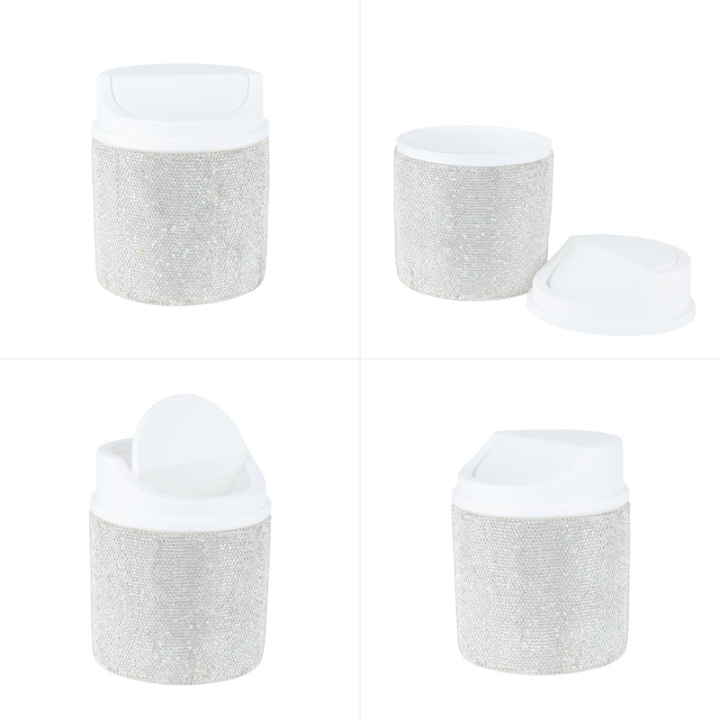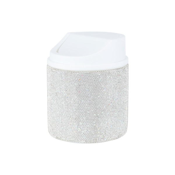 KEYPOWER Bling Rhinestone Mini Plastic Trash Can Cute Small Waste Can with Swing Lid,Suitable for Home Countertop,Car,Table Desk,Office (White)