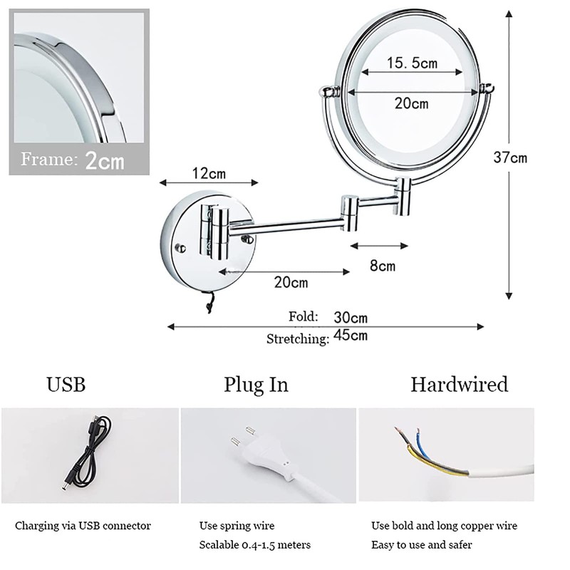 - ★ The Most Commonly Used Functional Mirror: No rust, anti-corrosion, smooth, durable, beautiful, suitable for any decoration, suitable for homes, hotels, spas and bathrooms. Suitable for makeup, such as wearing contact lenses, trimming eyebrows, braiding, makeup, haircuts and shaving.