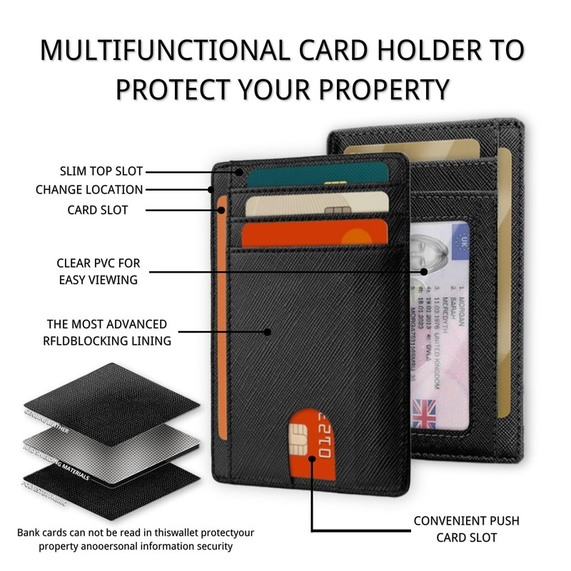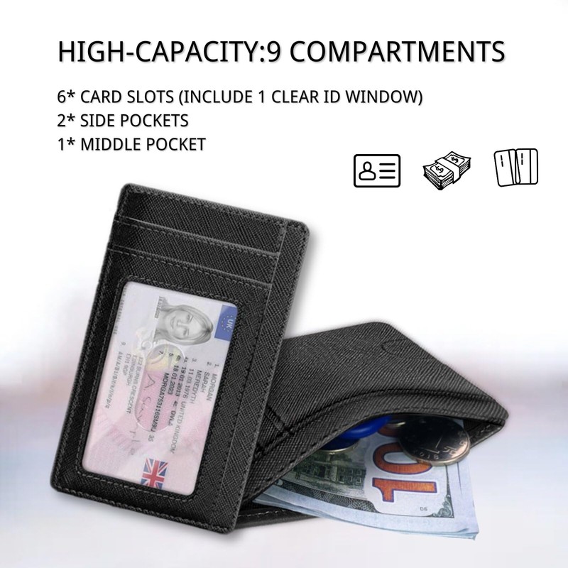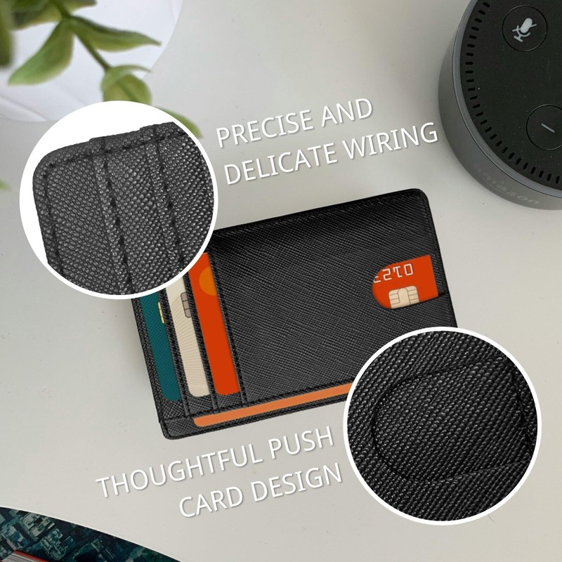 • SLIM AND STYLISH: The outside of the card case is made of PU leather. The soft PU leather looks great and simple. Space saving design, convenient to take with you when going out, one card in hand solves all the problems