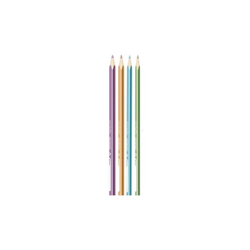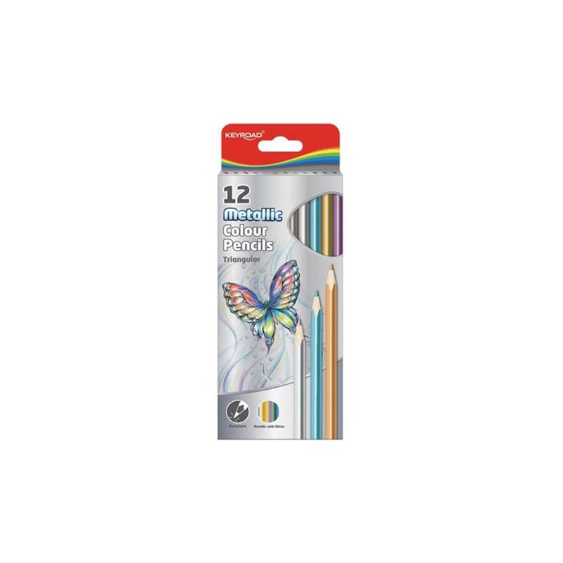 KEYROAD, 971756, AA8Metallic Colouring Pencils, High Quality, Triangular Shape, Pack of 12, Mixed Colours, Adults and Children, Soft Graphite Wooden Shaft