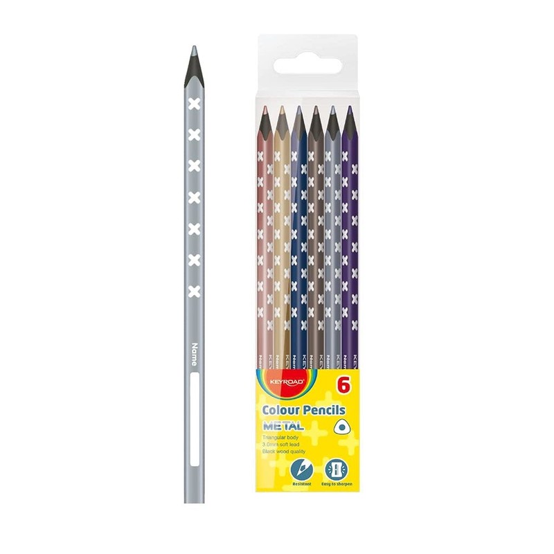 - KEYROAD Ergonomic metallic triangular coloured pencils with particularly soft and colour-intensive lead