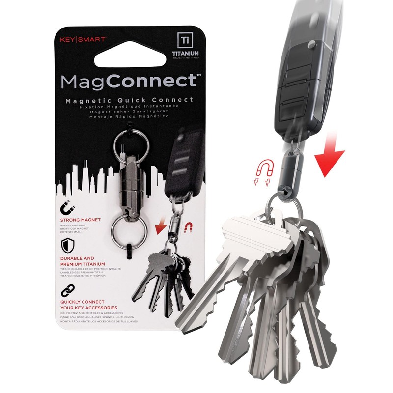 KeySmart MagConnect Magnetic Key Holder for Purse, Key Chains for Car Keys - Detachable Key Ring Quick Release Keychain for Men - Mens Key Chain Rings Heavy Duty Key Ring - Titanium EDC (3-Pack)