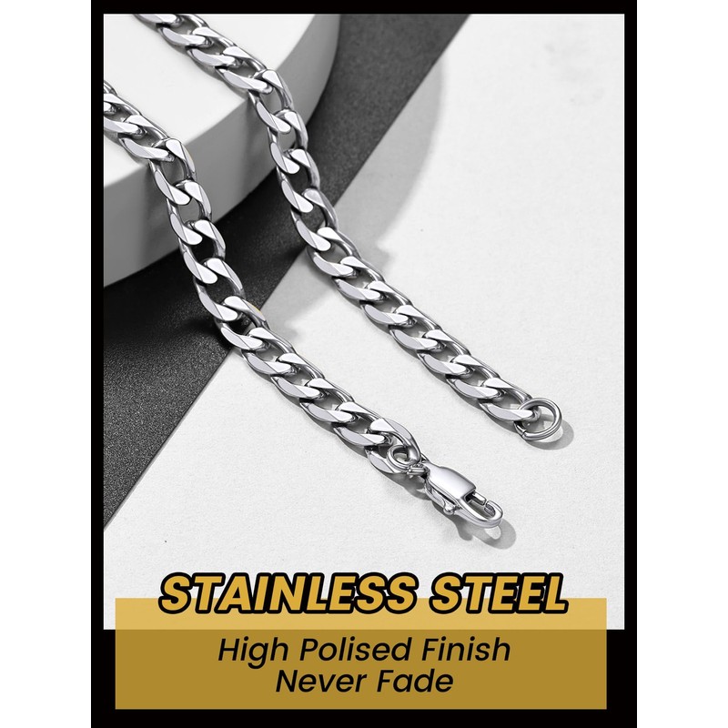 - Premium 316L Stainless Steel Cuban Link Chain: Hypoallergenic and nickel-free, our flat Cuban chain is perfect for sensitive skin, featuring a high-gloss coating to retain its shine and prevent tarnishing.