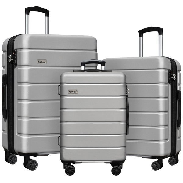 KEYTANG Explorer Lightweight Hardside Expandable Luggage Spinner Wheels Suitcase W/TSA Lock, Silver, New-3 Piece Set