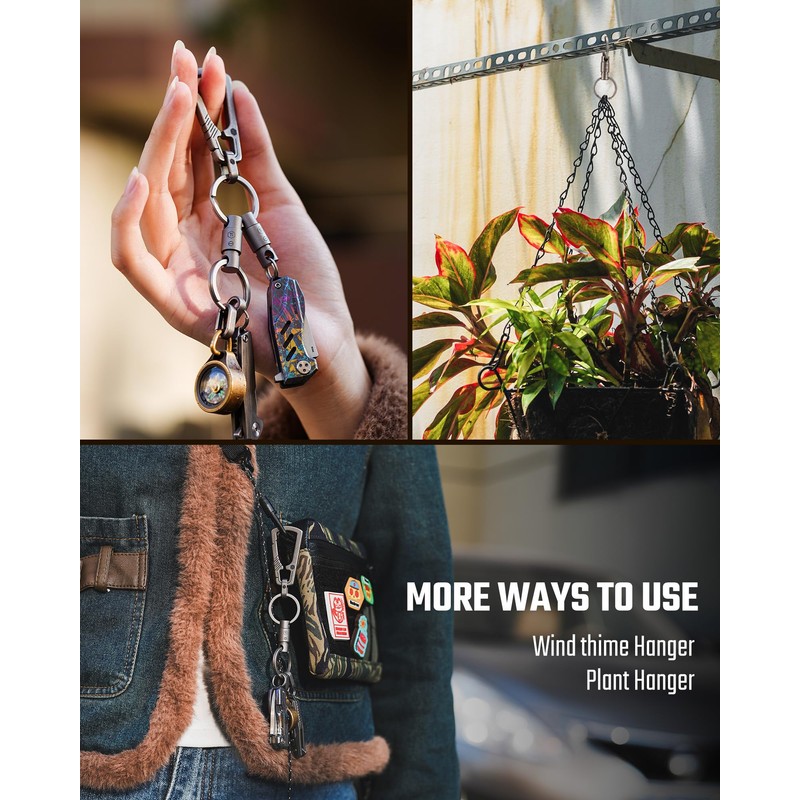 KeyUnity KA50 Detachable Key Ring Connector 2 pcs, Double-end Swivel Keychain Titanium Rotatable Key Organizer Linker for Carabiner