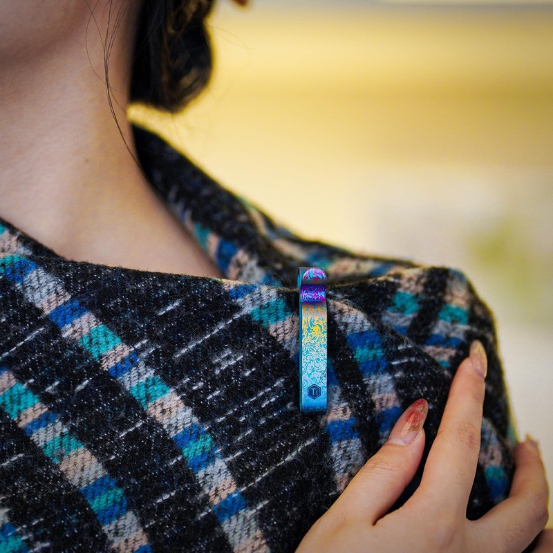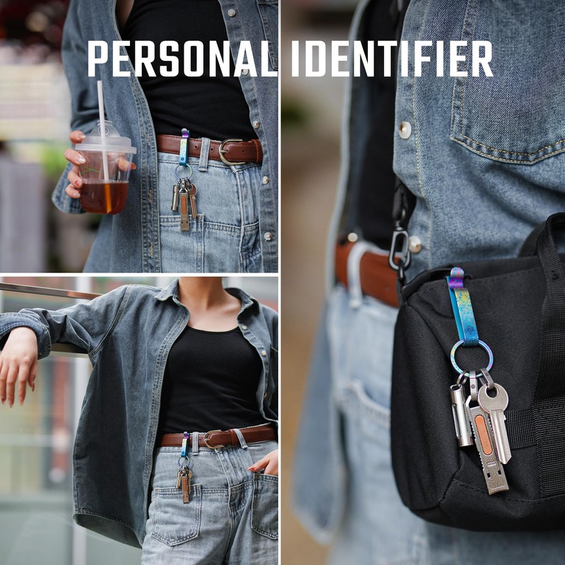 KeyUnity KM02 Titanium Decorative Clip Double Sided Keychain Hook, Anodized Pattern Belt Loop Keychain Clip for Women Girls Clothing Bag Accessories