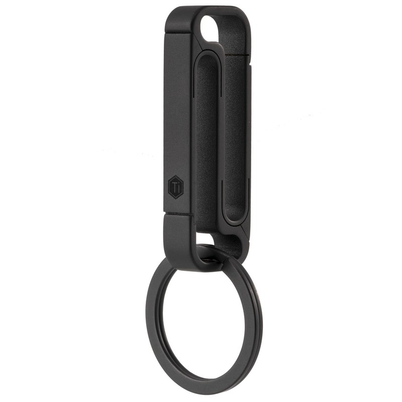 [KeyUnity] KM11 Titanium Key Chain Belt Clip Double Sided Carabiner for Men with Key Ring Medium Sandblasted Titanium Key, PVD Black